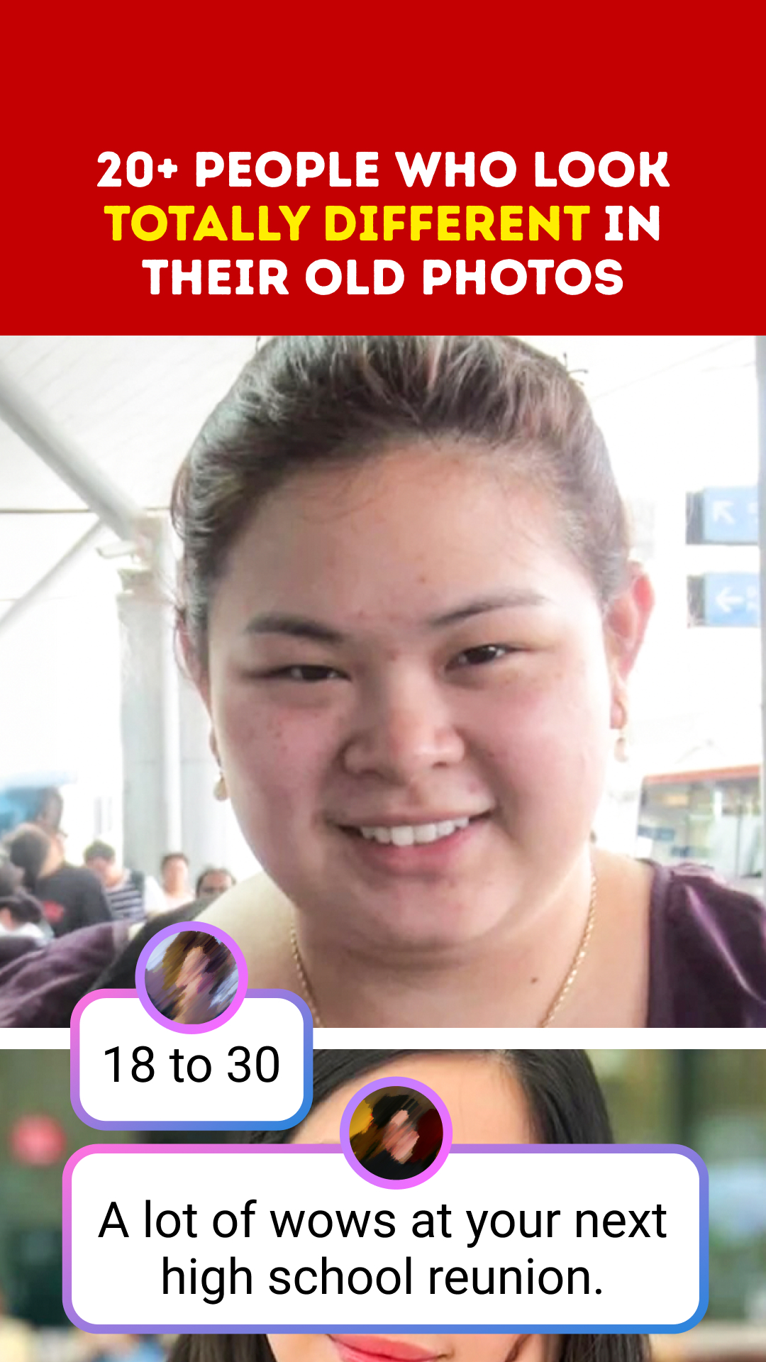 “18 to 30” A lot of wows at your next high school reunion. “21 to 28” “18 to 32. Went from hating and neglecting myself to loving and nurturing myself.” “17 to 23” I refuse to believe it’s the same person “15 to 19” “22 to 25” “19 to 28” “I’m 16 in the left photo and 23 in the right one”