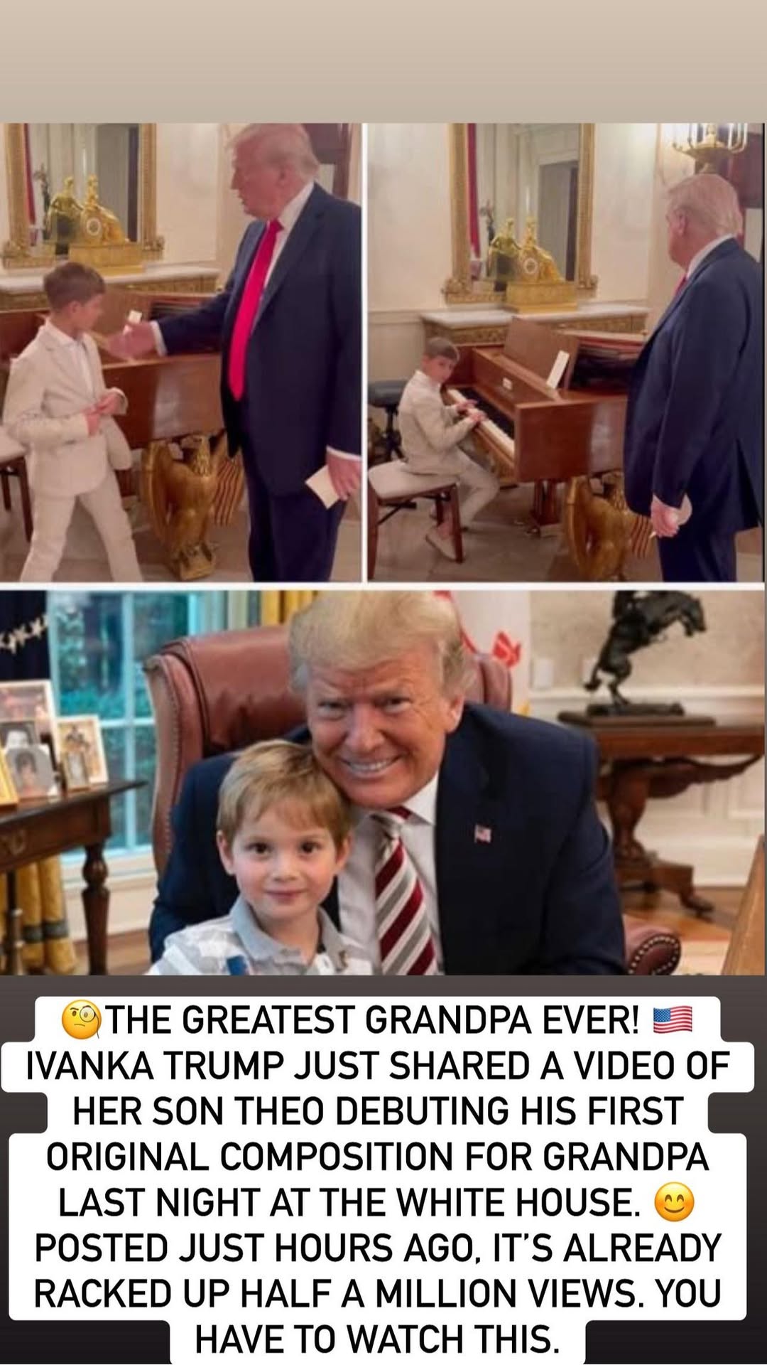 Ivanka Shares Sweet Video of Son Theo Playing Piano for Grandfather at the White House